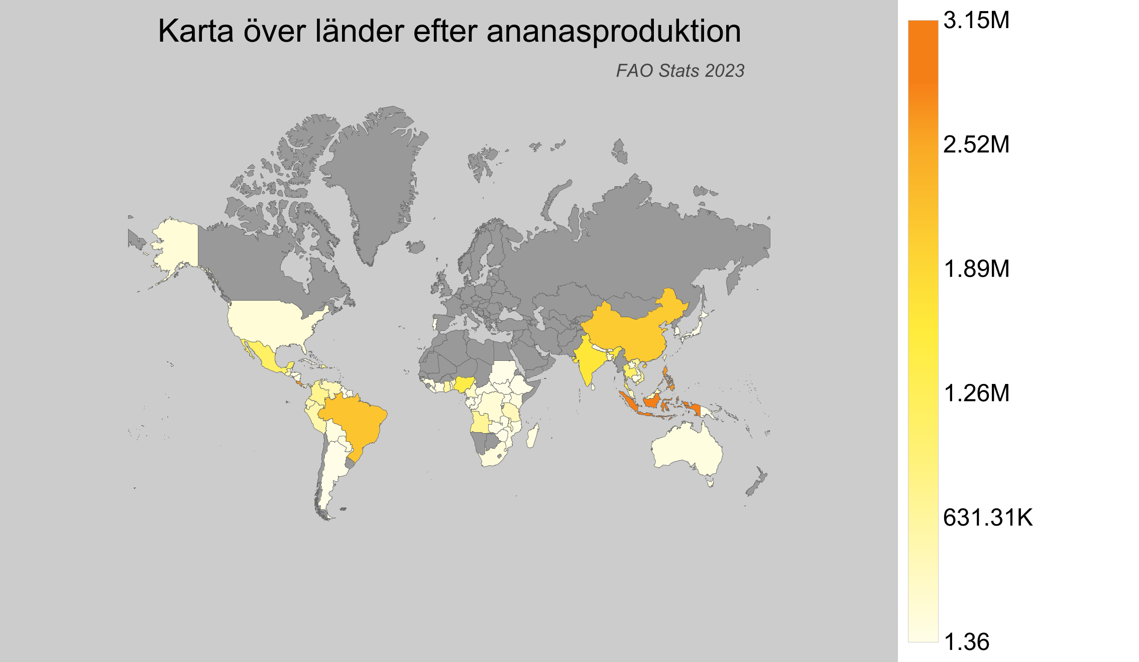 - Enligt FAO-statistik producerar Sverige inga ananaser, vilket inte är överraskande med tanke på vårt kalla klimat.