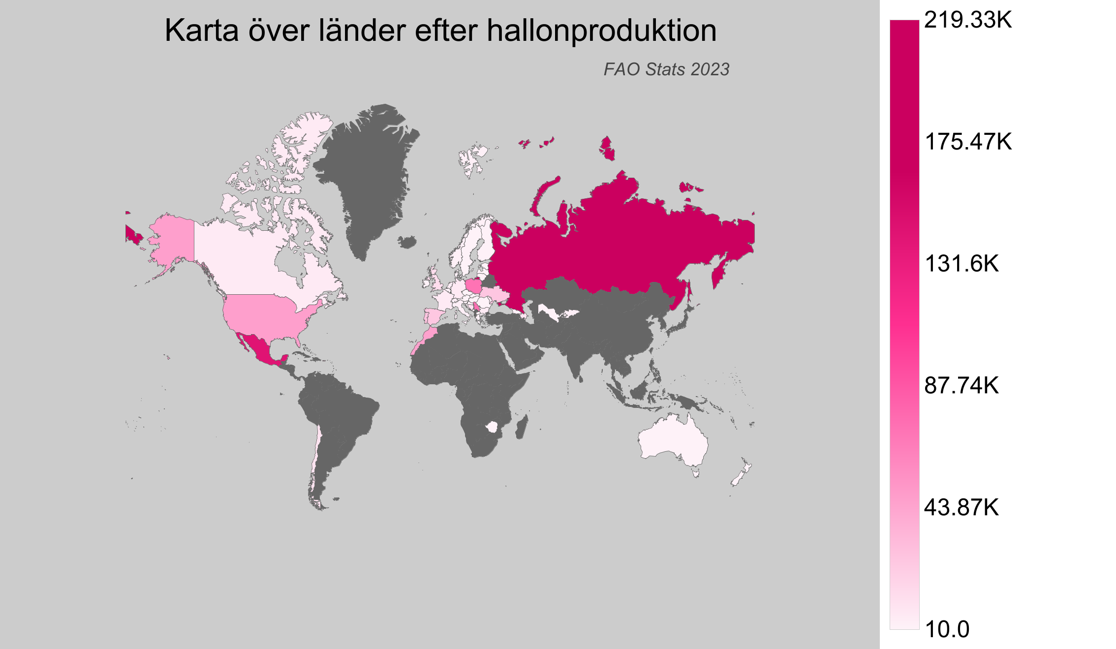 - Ryssland: Ryssland är världens största producent av hallon med en produktion på cirka 219 000 ton.