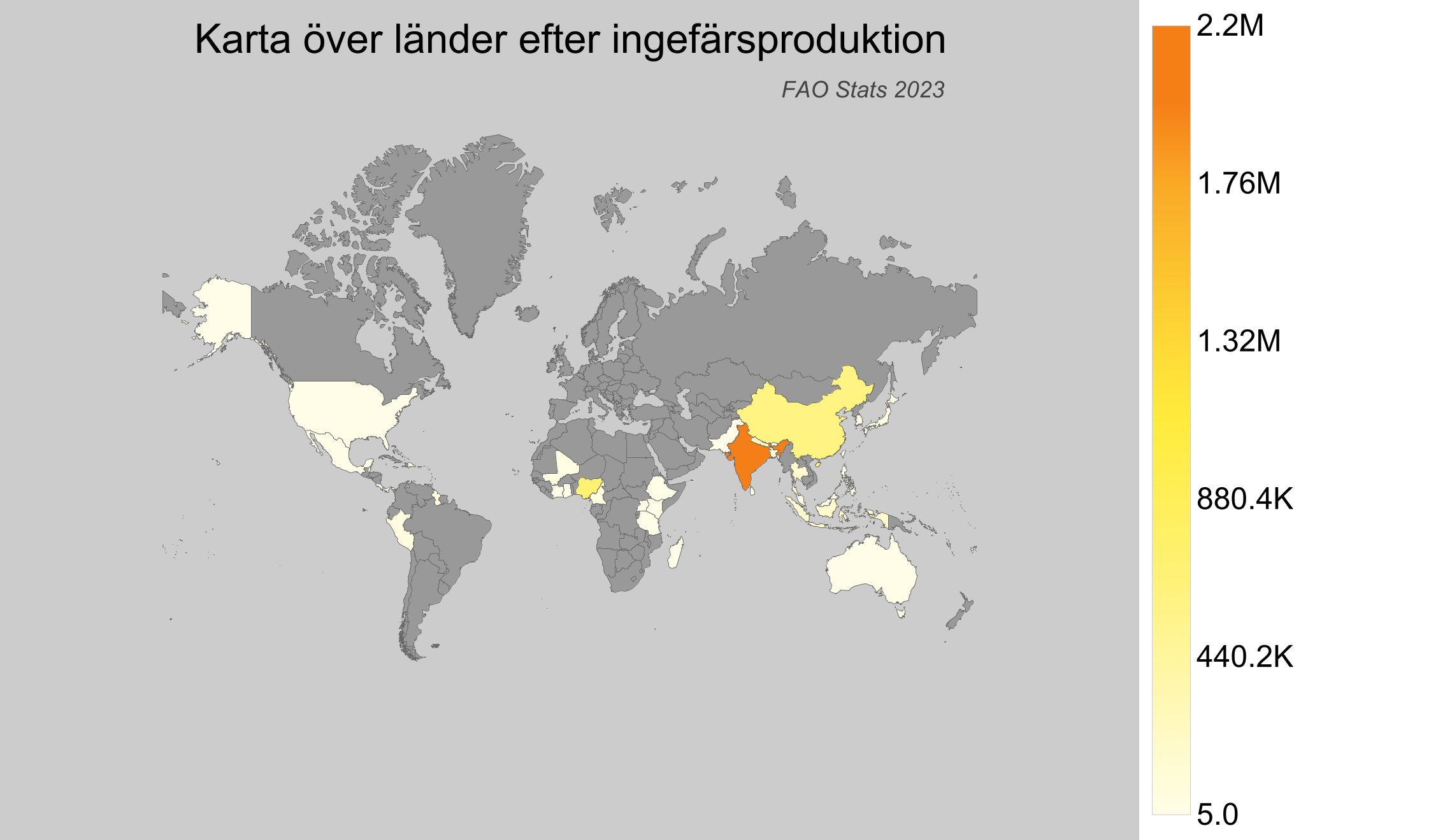 - Sverige har enligt FAO-statistik ingen dokumenterad produktion av ingver.